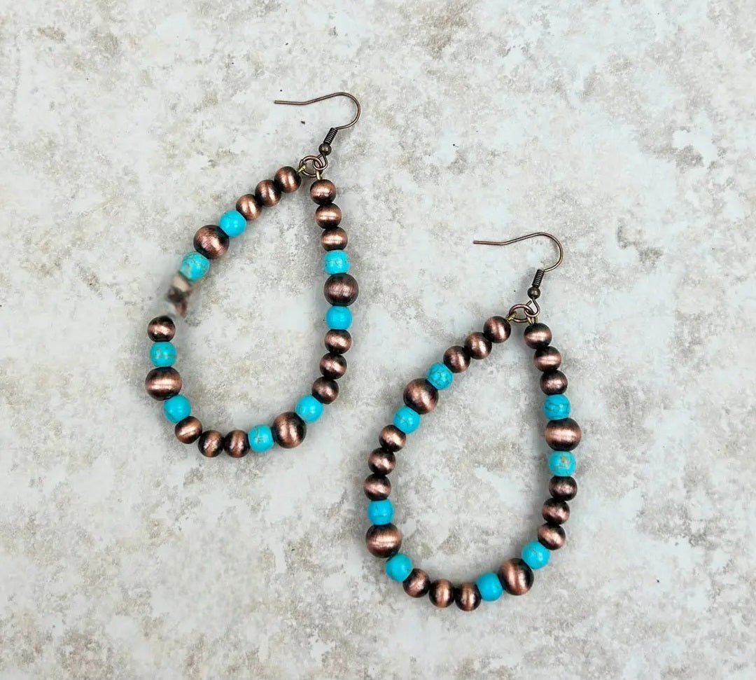 Western Elite Qty. 1 2 3 4 5 6 7 8 9 10 Add to Cart Copper Navajo Pearl With Blue Turquoise Stone Teardrop Earrings - is currently on backorder. You may still purchase now though and we'll ship as soon as more become available.