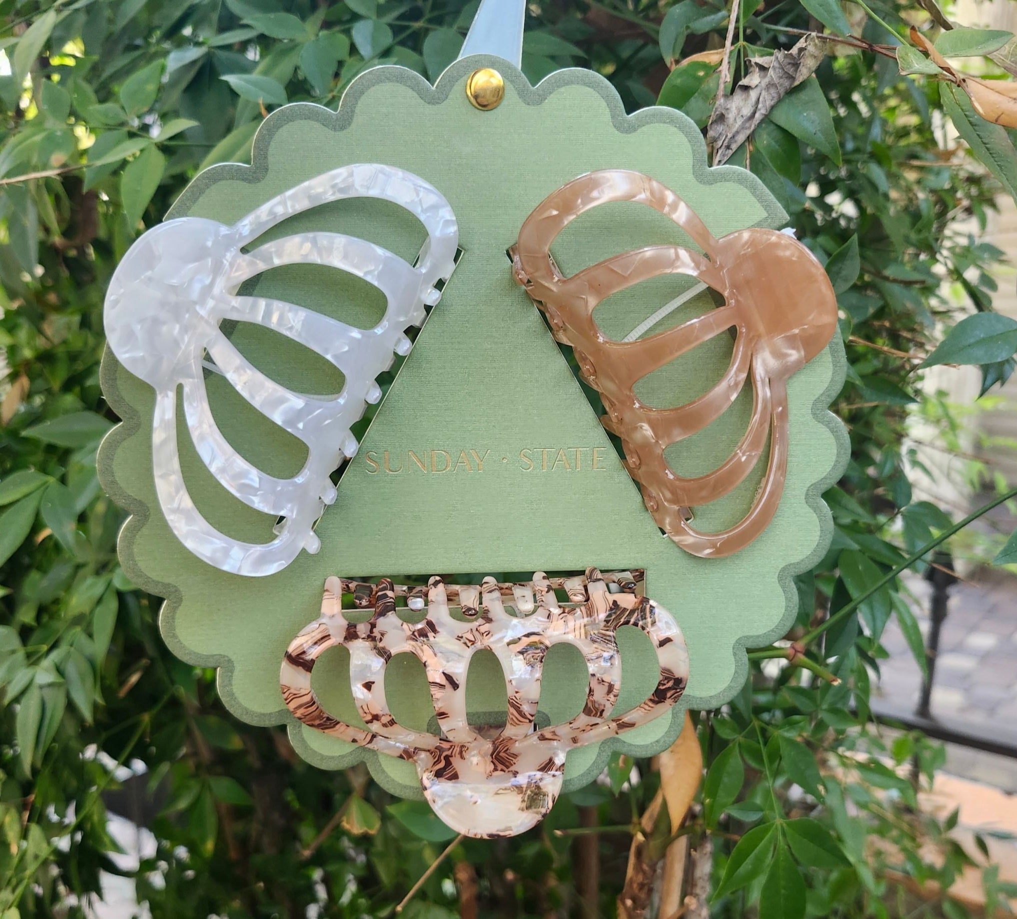 Sunday State Qty. 1 2 3 4 5 6 7 8 9 10 Add to Cart Crackled Hair Clips - is currently on backorder. You may still purchase now though and we'll ship as soon as more become available. Set of 3 crackled hair clips!