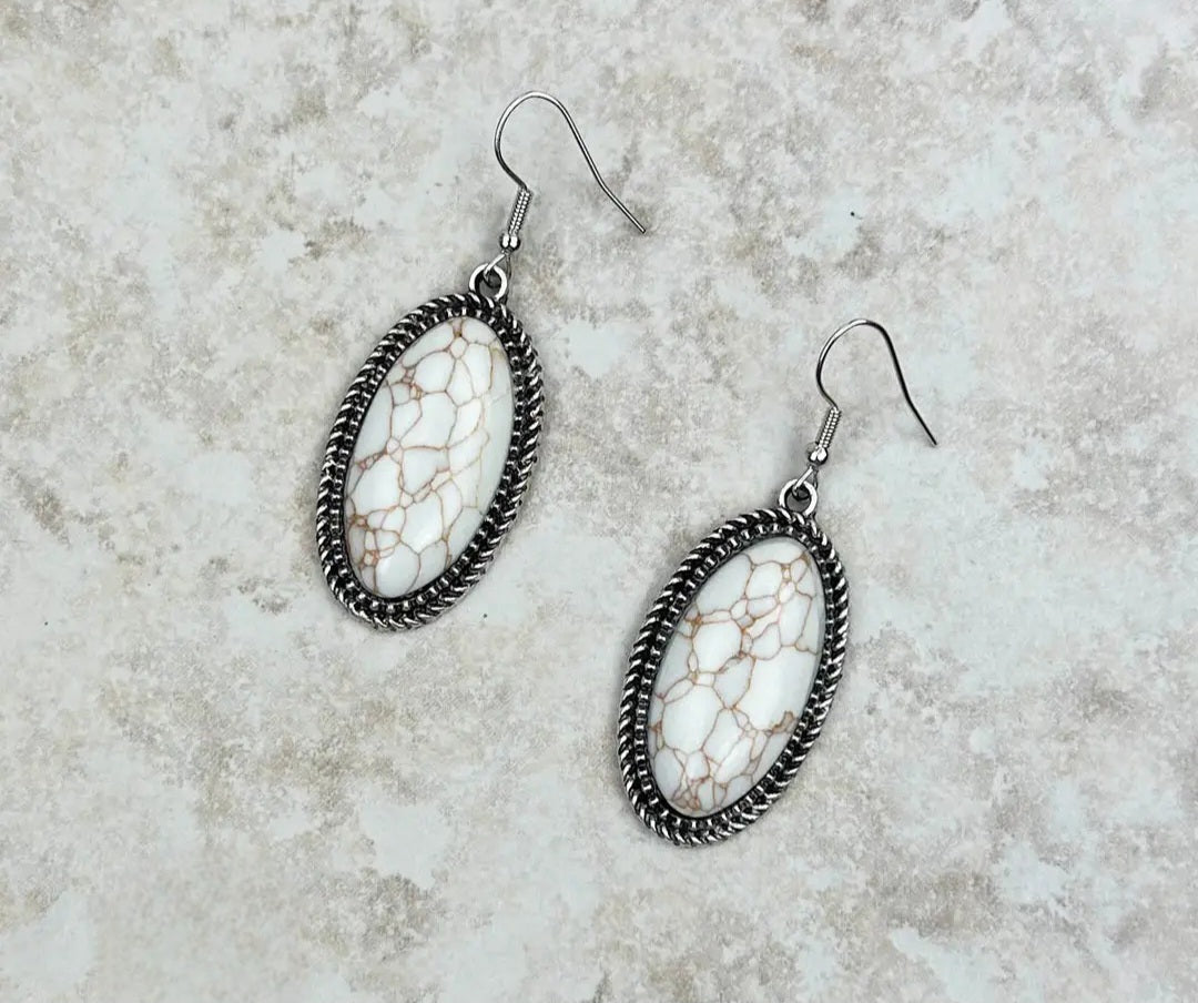 Western Elite Qty. 1 2 3 4 5 6 7 8 9 10 Add to Cart Silver Oval Dangle Earrings With White Stone - is currently on backorder. You may still purchase now though and we'll ship as soon as more become available.