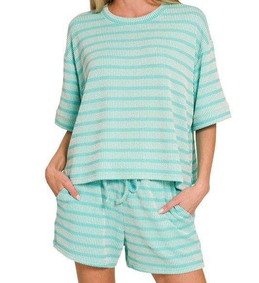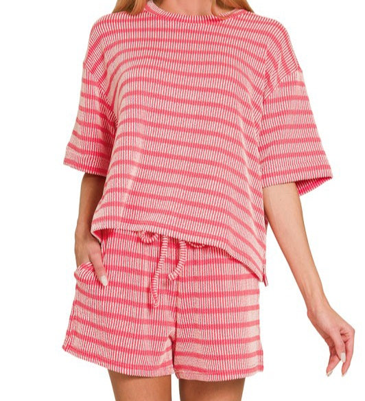 Zenana Light Plum - Small - $ 32.00 Light Plum - Medium - $ 32.00 Light Plum - Large - $ 32.00 Mustard - Small - $ 32.00 Mustard - Medium - $ 32.00 Mustard - Large - $ 32.00 Red - Small - $ 32.00 Red - Medium - $ 32.00 Red - Large - $ 32.00 Sand Beige - Small - $ 32.00 Sand Beige - Medium - $ 32.00 Sand Beige - Large - $ 32.00 Turquoise - Small - $ 32.00 Turquoise - Medium - $ 32.00 Turquoise - Large - $ 32.00 Qty. 1 2 3 4 5 6 7 8 9 10 Add to Cart Striped Tee/Shorts Set - is currently on backorder. You may still purchase now though and we'll ship as soon as more become available. Runs TTS/With A Flowy Fit! 51% Rayon 46% Polyester 3% Spandex