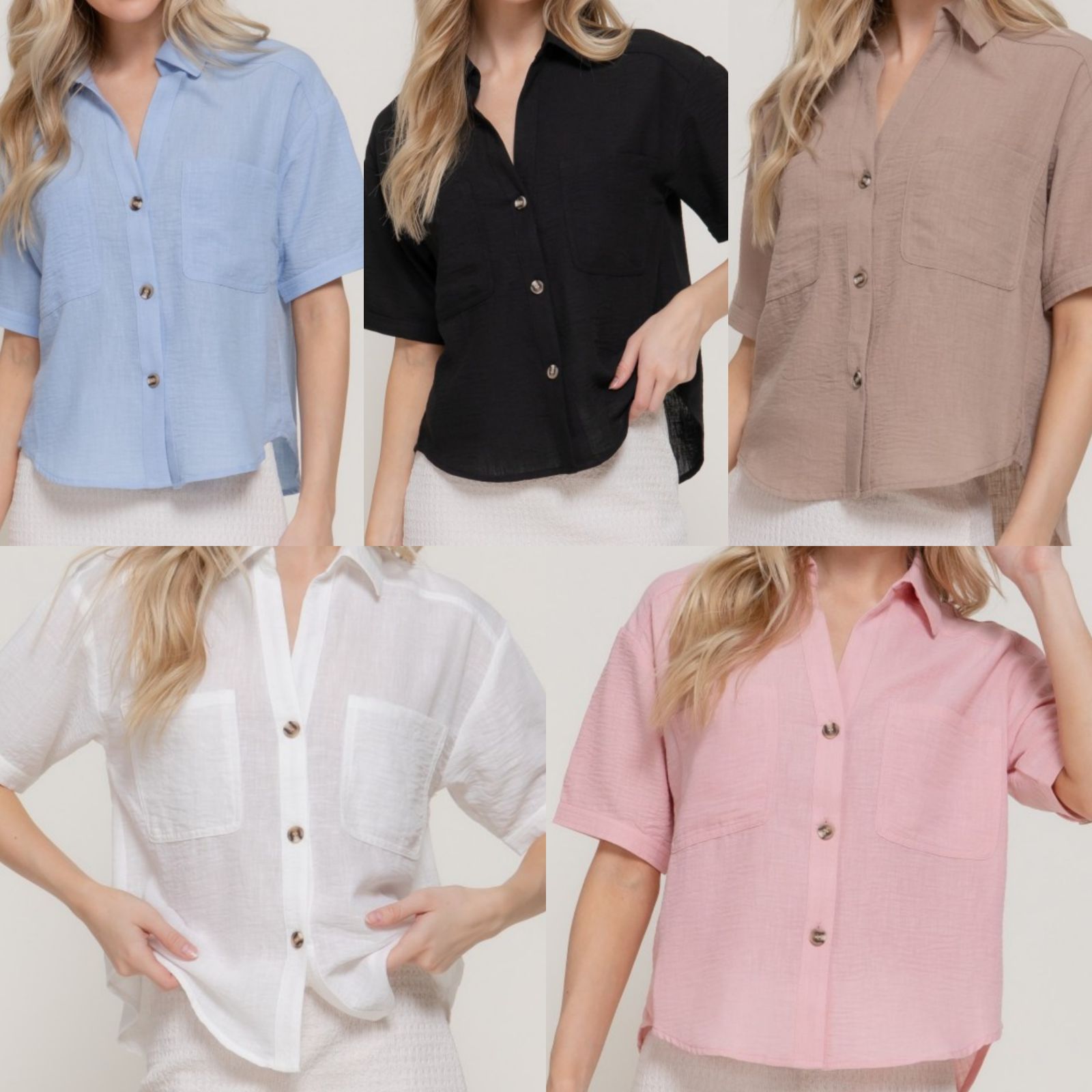 Active Basic Pink - Small - $ 30.00 Pink - Medium - $ 30.00 Pink - Large - $ 30.00 Tan - Small - $ 30.00 Tan - Medium - $ 30.00 Tan - Large - $ 30.00 Off White - Small - $ 30.00 Off White - Medium - $ 30.00 Off White - Large - $ 30.00 Black - Small - $ 30.00 Black - Medium - $ 30.00 Black - Large - $ 30.00 Blue - Small - $ 30.00 Blue - Medium - $ 30.00 Blue - Large - $ 30.00 Qty. 1 2 3 4 5 6 7 8 9 10 Add to Cart Collared Linen Top - is currently on backorder. You may still purchase now though and we'll ship as soon as more become available. Runs TTS/With A Flowy Fit! Linen Effect 100% Polyester