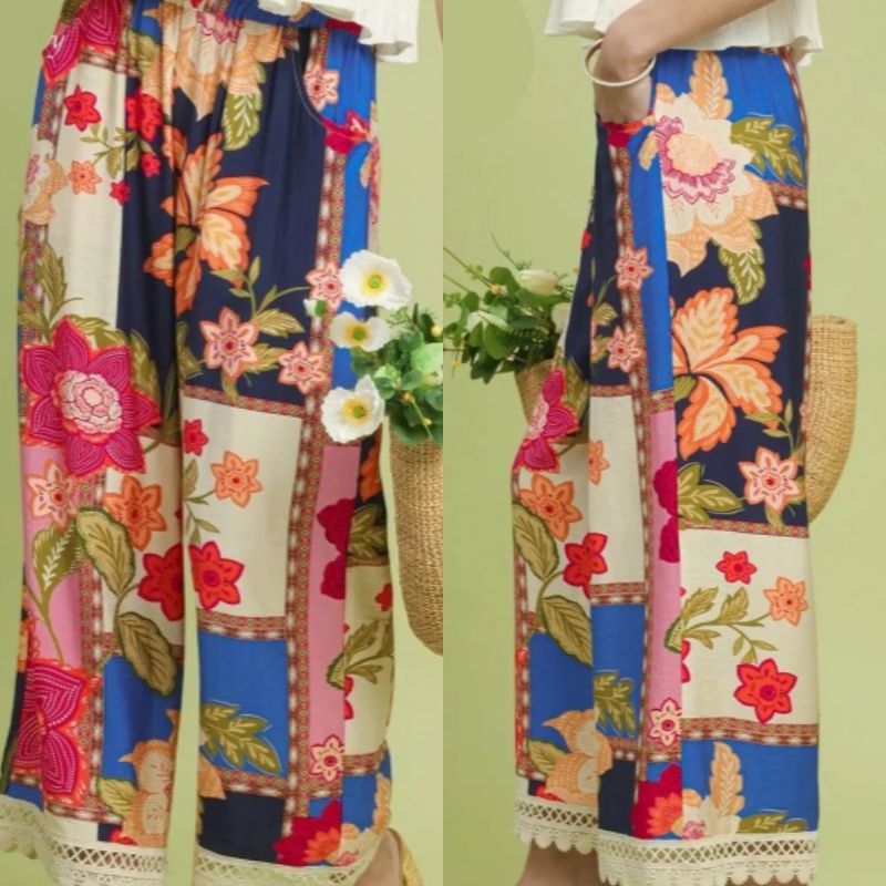 umgee Blue Mix - Small - $ 46.00 Blue Mix - Medium - $ 46.00 Blue Mix - Large - $ 46.00 Qty. 1 2 3 4 5 6 7 8 9 10 Add to Cart Abstract Patchwork Print Pants - is currently on backorder. You may still purchase now though and we'll ship as soon as more become available. Runs TTS/Elastic/With A Flowy Fit! 80% Rayon 20% Nylon